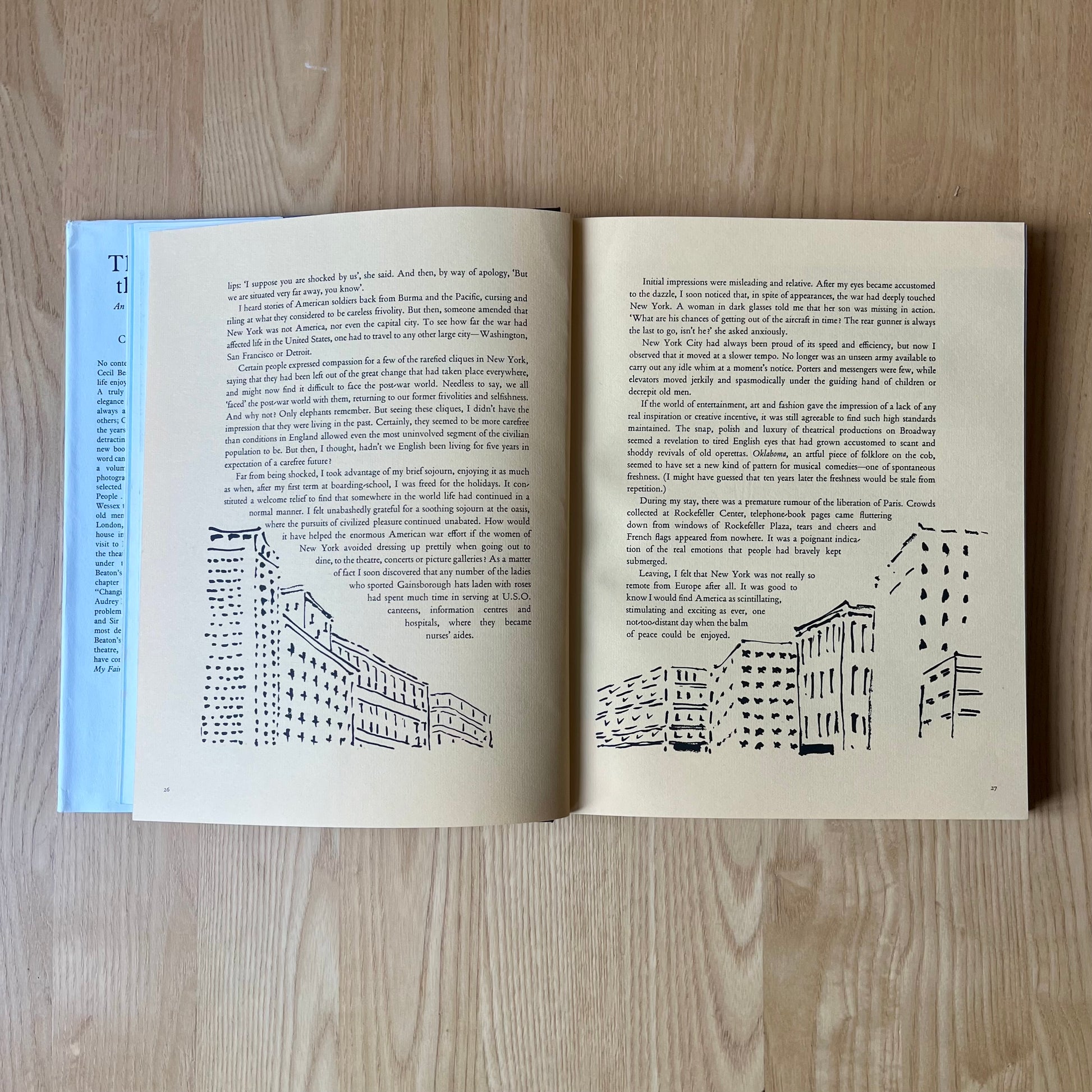 This book compiles his photographs, drawings, and journal extracts from 1945 to 1956. It showcases how art and culture were revitalized after the war, and that 'another world' was possible. The book features portraits of figures ranging from Pablo Picasso to Audrey Hepburn, writers such as Colette, Sartre, Jane and Paul Bowles, alongside articles and images from cities such as London, Paris, and Tokyo.