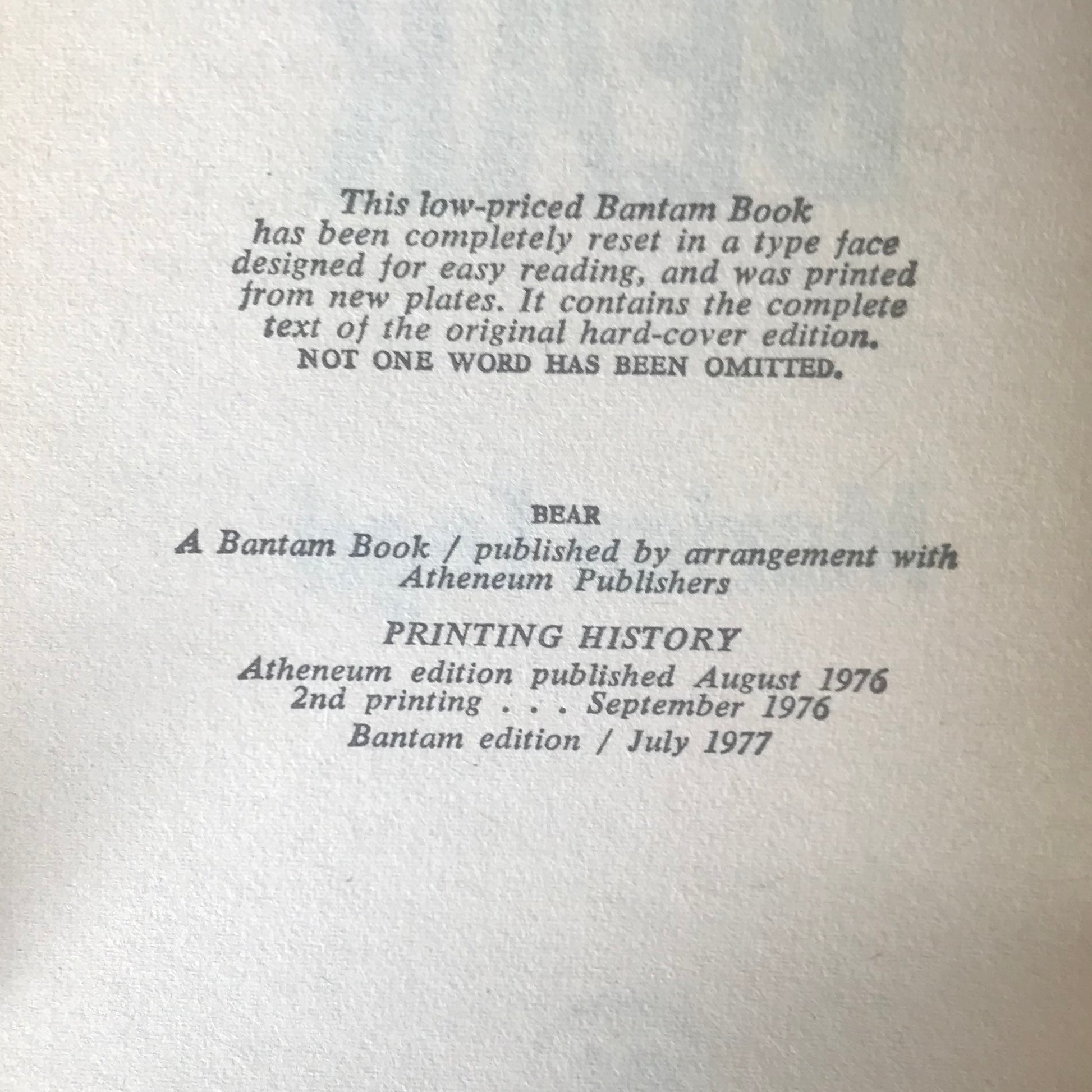 Engel, Marian. Bear. Bantam Books, 1977. 167 pp. FIRST PAPERBACK EDITION. In VG+ condition.